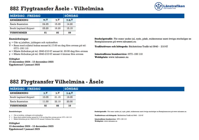 Taxiresorna måste förbeställas. Närmare information om vilka tider som gäller för taxins avgång till och ankomst från flyget lämnas av Bäckströms trafik vid beställningen.